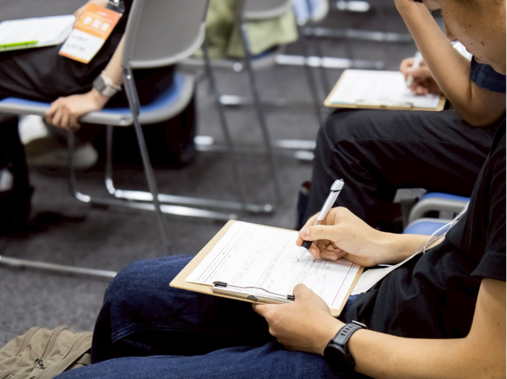 企業ブースで聞いた情報をワークシートで整理する時間。自分の興味・関心を見つけよう!